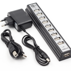 Hub USB GOOJODOQ com 10 Portas USB 2.0 e Fonte de Alimentação AC para Periféricos de Computador, Portátil para PC, Laptop e Notebook