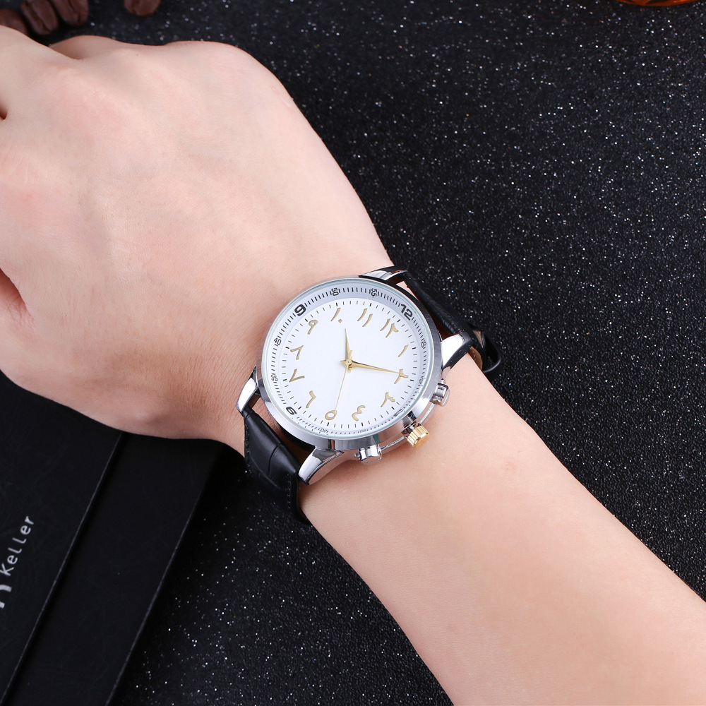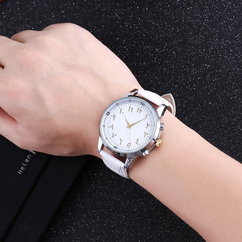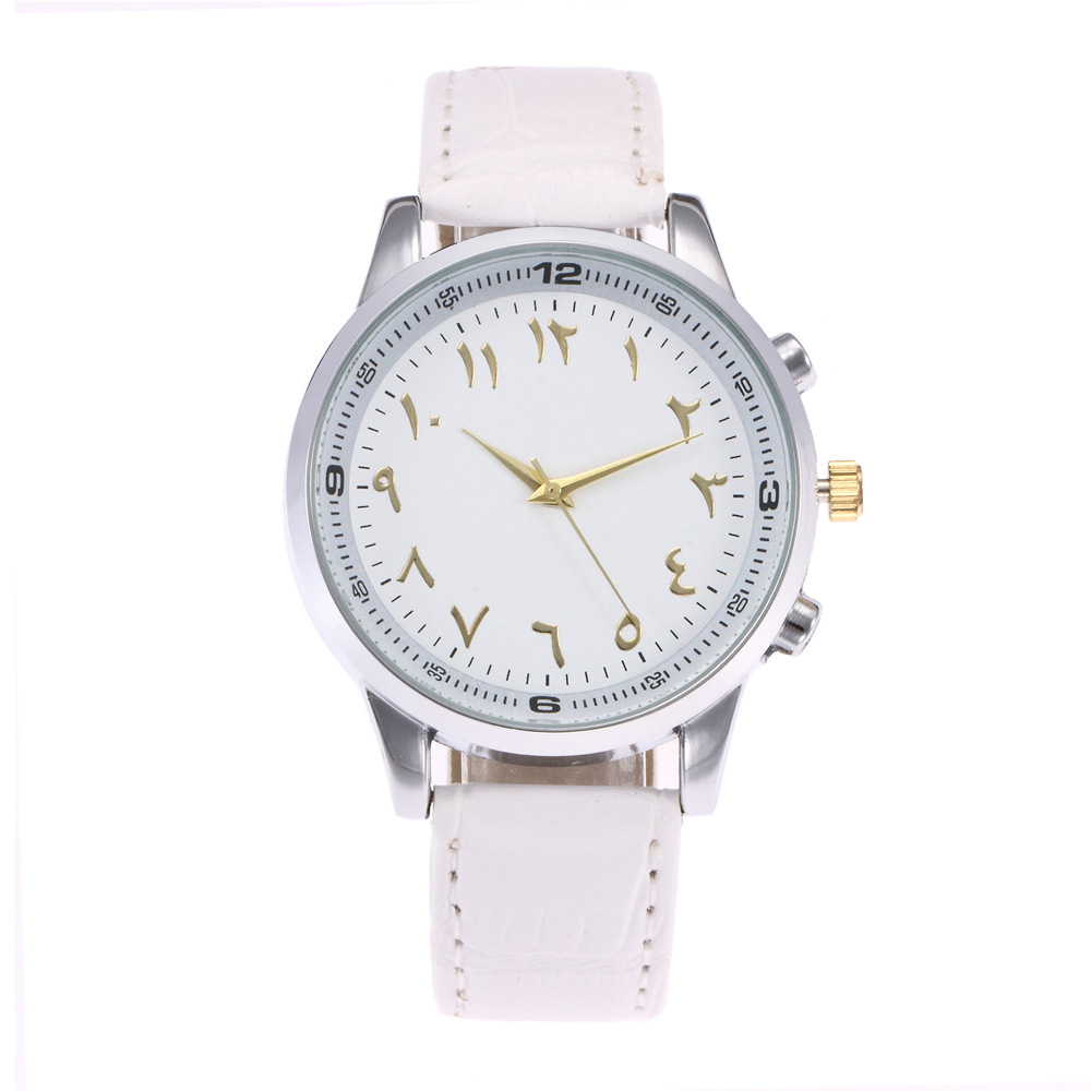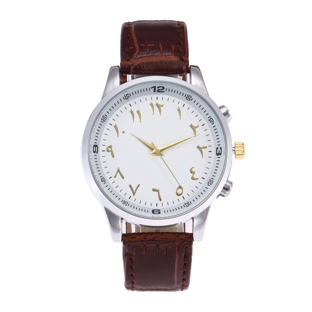 Um relógio com numerais arábicos apresenta marcadores de hora e/ou numerais nas posições correspondentes ao redor do mostrador do relógio. Em contraste com os numerais romanos, os numerais arábicos são os dígitos 1, 2, 3, e assim por diante, usados no sistema numérico indo-arábico.