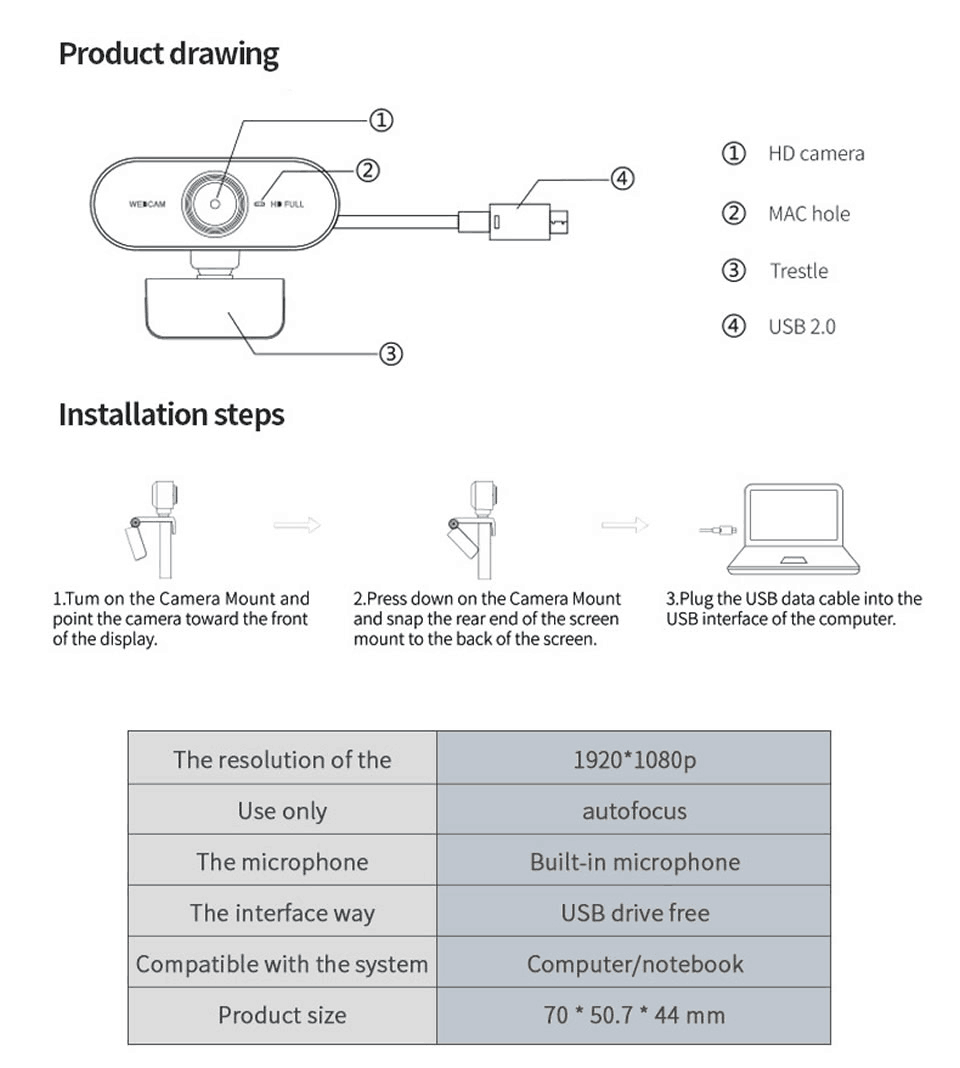 HD 1080P Mini WebCamera com microfone Câmeras rotativas para