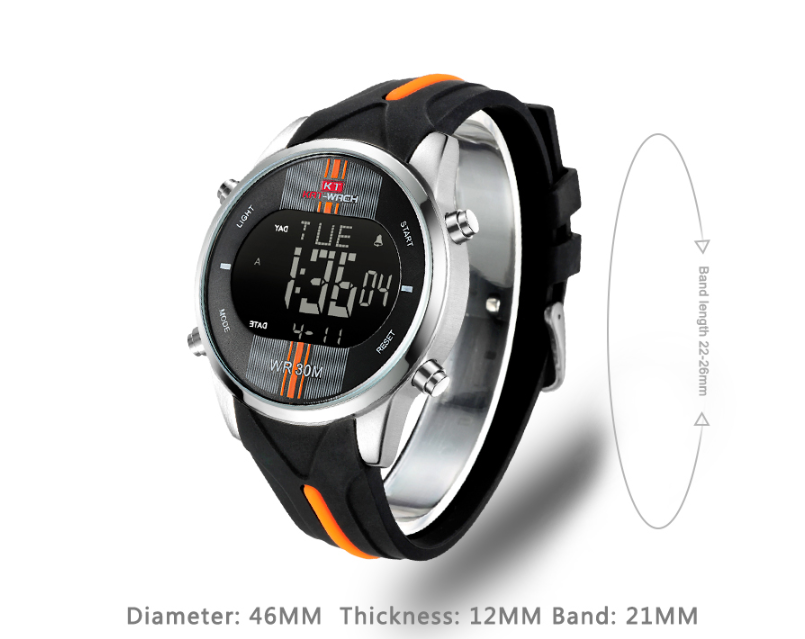 1. Design resistente e durável: O relógio é projetado para suportar atividades esportivas e uso diário, com materiais resistentes a impactos e arranhões.