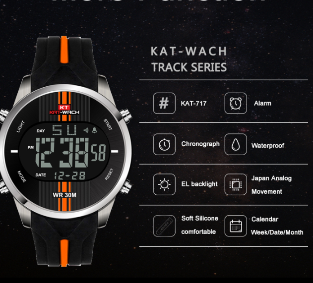 3. Múltiplas funções: Este tipo de relógio geralmente inclui várias funções, como cronômetro, alarme, calendário, luz de fundo e indicador de semana, fornecendo praticidade adicional para o usuário.